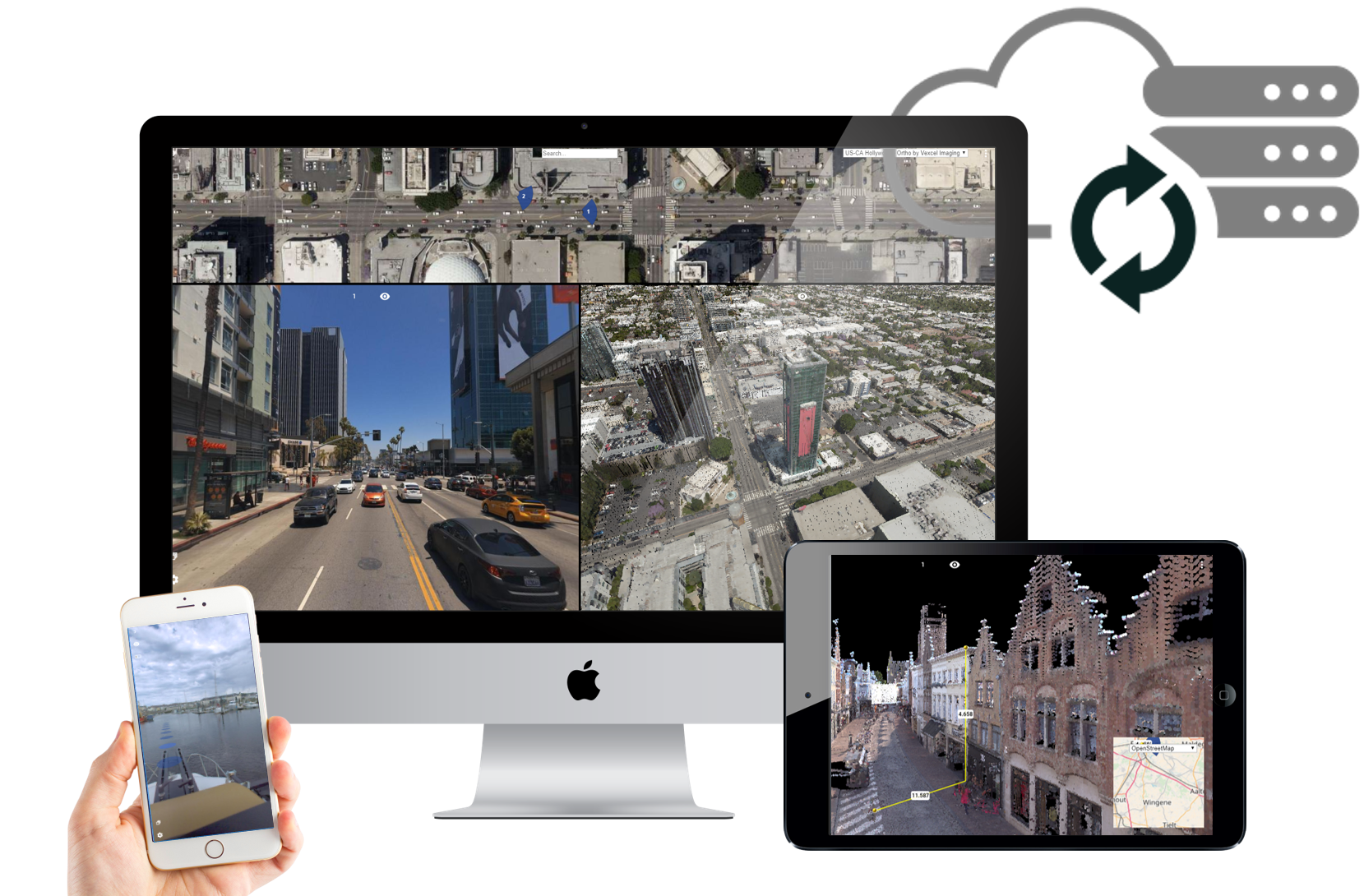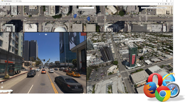 The access via a web client for Streetview planars/panoramas, UAV nadir, and aerial oblique pictures is free of charge. Access your shared 3D mapping data via any web browser. Use your login and password to view, navigate, overlay, measure, and extract.