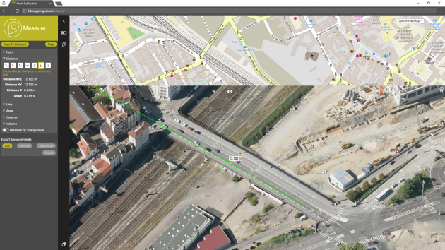 The access via a WebClient for streetview planar and panorama images, UAV nadir and Aerial oblique pictures are included in the Orbit 3DM Publisher. Access your shared 3D Mapping data via any web browser. Use your login and password to view, navigate, overlay, measure, and extract. Two different web clients (Flash-based and HTML5) are available for the 3DM Publisher on-premises. Please read carefully the production comparison list to check available features for each type of WebClient.